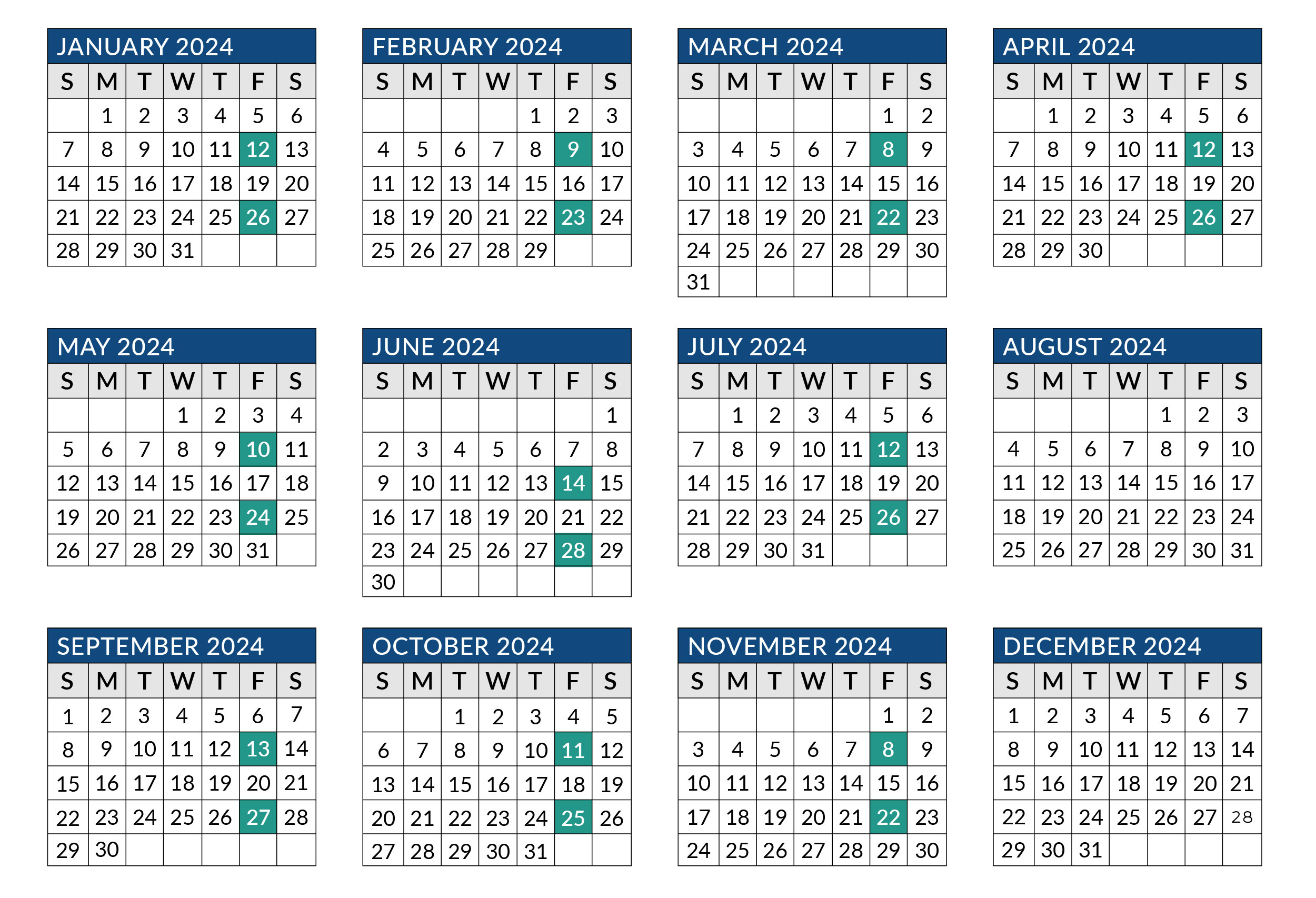 See below for the program dates for the whole of 2024 so you can plan your schedule around them.